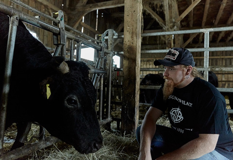 Welches Futter bekommen sie? Ist gewährleistet, dass sie keinen Stress haben? „Für mich sind Tiere keine Produkte, sondern Lebensmittel. Sie geben ihr Leben, damit wir besser leben. Darum tu ich alles, damit es ihnen gut geht“. Das ist seine tägliche Prämisse auf dem Hof. Über diese Philosophie erschien 2014 im Matthaes Verlag sein Buch “Fleisch“ bei dem er sich ausschließlich den „ungeliebten“ Teilen der Nutztiere widmet. Das Buch erhielt auf Anhieb den World Gourmond Cookbook Award sowie 2 Sterne von Jürgen Dollase und die Silbermedaille der GAD. Neben den Wagyurindern kreuzt Maurer auch mit Black Angus. Heraus kommt dabei der sogenannte Schergengruber OX.